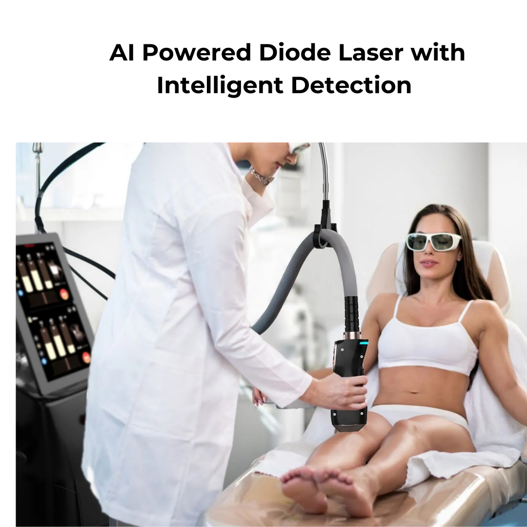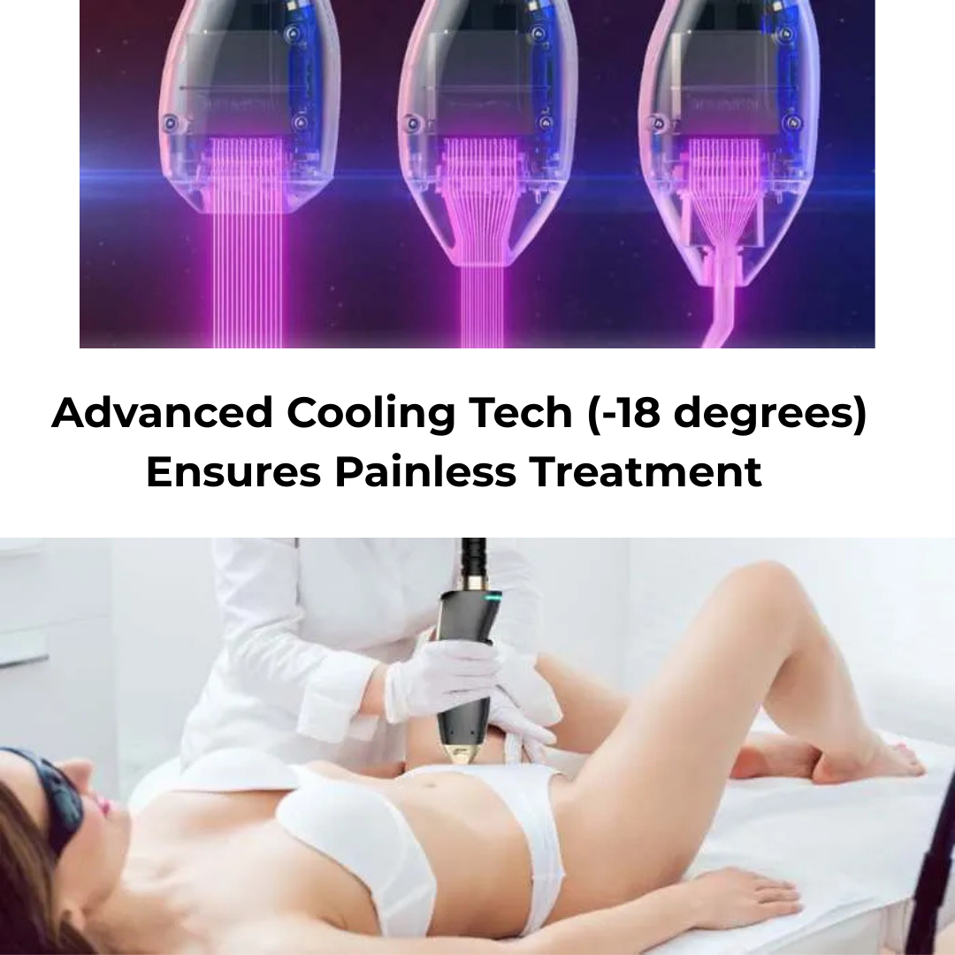 The machine uses 755nm, 808nm, 940nm, and 1064nm wavelengths to cater to various skin types, hair thickness, and colors. This allows for precise treatments, even for residual fine hairs and deep follicle penetration.